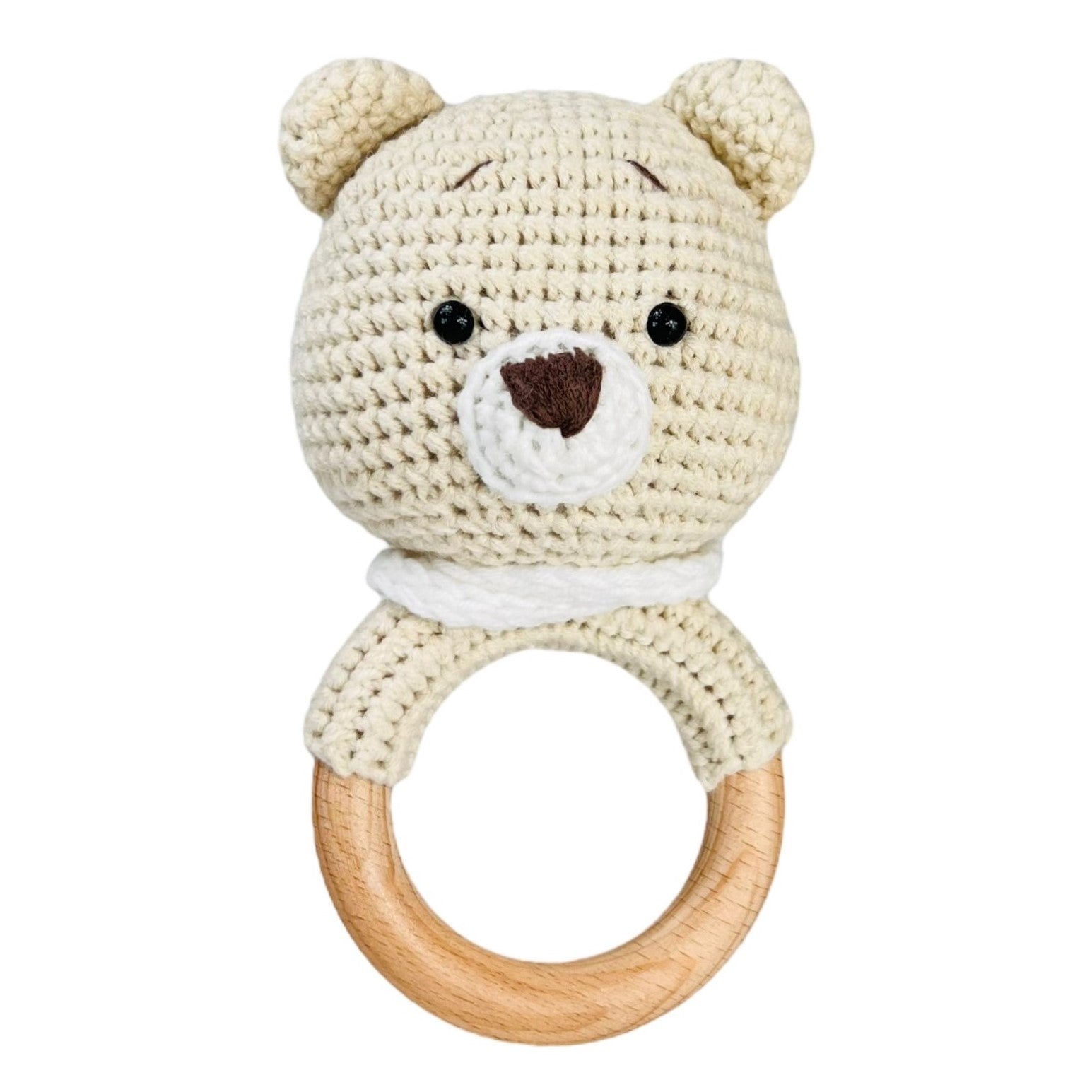 The crocheted bear rattle is a charming and durable toy designed to stimulate infants' senses and provide them with a comforting companion. With an adorable bear design and handmade crocheted body, this rattle is a high-quality and long-lasting addition to any child's world.